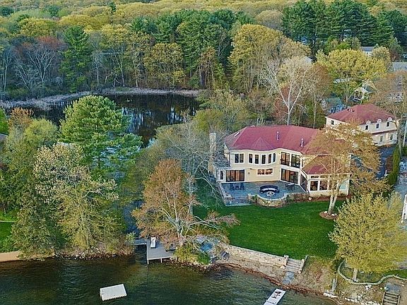 Tuscan-style villa located in one of the most private and coveted locations on Webster Lake. The main house spans over 4,200 sqft of luxurious living space with 4 BRs / 4.5 baths. The Primary Suite features over 700 sqft, complete w/ a private balcony, offering unparalleled lake views. It also boasts a huge walk-in closet and a spa-like bathroom. The main level features an open concept Kitchen, DR, and Family Rm - perfect for entertaining. Chef's kitchen w/ 2 sinks, pot filler, high-end appliances and giant granite island. Unique amenities include an elevator, 2 laundry rooms, indoor brick oven wood fire grill, and a 4-car garage w/ a 1,500 sqft guest house above. Nestled on an enormous level lot w/ western exposure offering breathtaking sunsets that will leave you in awe. The 80 ft of water frontage includes a sandy beach and provides ample space for waterfront activities. Experience the very best of lakefront living at this one-of-a-kind property, just an hour away from Boston!