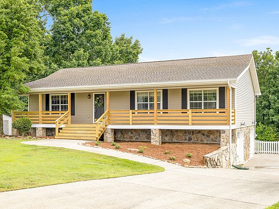 Conveniently located in a cul-de-sac in the Stonecrest subdivision of Ringgold, this lovely home is updated throughout! With tile flooring, a new front porch, remodeled bathrooms, and new siding, it's absolutely move-in ready. Gorgeous vaulted ceilings are showcased in the living room, with a fireplace to accentuate the space. Host friends or family in the eat-in kitchen. All primary and guest bedrooms can be found on the first level with hardwood floors throughout. The back deck overlooks the half acre lot, adding ample green space to the list of checked boxes. A large, unfinished basement with a full bathroom is particularly ideal for those looking toward future expansion or utilizing storage space. If storage is important, you'll love the oversized 2-car garage with room for all your extras. Don't miss this opportunity, schedule your showing today!