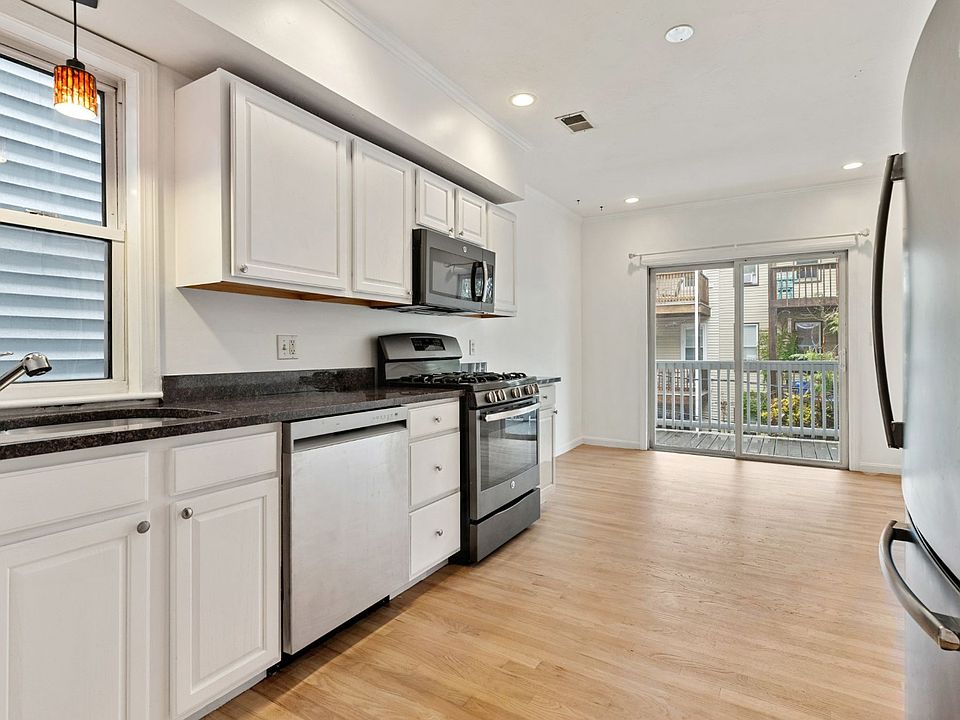 MORE PICTURES TO COME!! Rarely available in the East Side of Southie for under 720k!!! This fantastic TWO bedroom / TWO bathroom condominium features a renovated eat-in kitchen with stone counter-tops, stainless steel appliances, white kitchen cabinetry with direct access to enormously sized private rear deck. Along with recently refinished hardwood floors, oversized primary bedroom with en-suite bath and walk-in closet, this pet friendly association includes a second full sized bedroom with guest bath, central air, gas fireplace, sun exposures on all four sides and additional storage in the basement with private laundry complete this perfect home. Located three blocks from the beach, near public transit and all of what Southie has to offer making this residence a perfect investment property or pied-a-terre. Ideal for roommates, end user or someone home owner working from home.