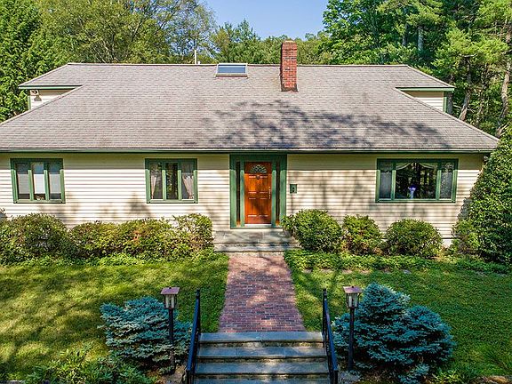 A circular drive makes an elegant approach to this extraordinary 4-bedroom, 3-bath home set on a height of land within walking distance to Dover's classic and convenient village center. Its recently renovated, eat-in, granite-countered kitchen opens to a spacious family room with fireplace, and a mahogany deck, both with beautiful views over the rolling lawn to a sparkling, stream-fed pond. The cathedral ceilinged dining and living rooms are ideal for formal entertaining. There is a proper master suite with updated bath and plenty of closet space. The walk-out lower level features a fireplaced bedroom suite with lovely views, kitchenette/wine room, and a fireplaced game room. This level also works as an in-law/au pair suite or professional office. Close to Noanet Woodlands, canoeing on the Charles, and top-rated public and private schools, this stunning retreat on the hill could soon be yours.