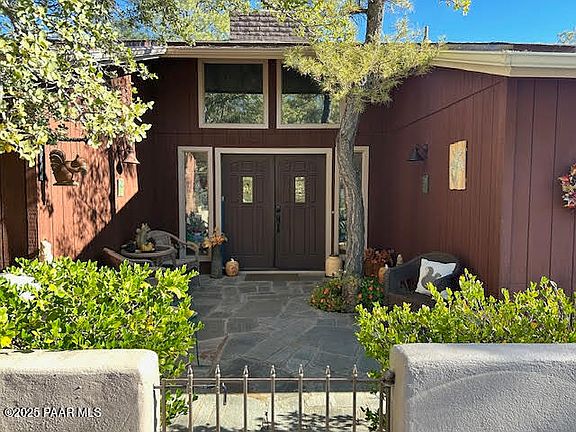 Very well cared for custom residence originally built for stain glass artists in Wildwood Estates. The timeless architectural features greet you the second you approach the flagstone entry courtyard. If you are looking for a home with quality and character this one will not disappoint from the vaulted ceiling and beams in the great room to the impressive 'focal point' stone fireplace and wall of windows overlooking the rear deck. Enjoy the warmth and beauty of wood, slate and tile floors throughout this split floor plan home. The expansive wood deck runs most of the length at the rear of the home and a few steps lead to a fenced in area for pets. Only a small portion of the property is fenced. The Kitchen is conveniently located off the dining area and provides lots of counter space and newer appliances with direct access to the rear deck. The laundry area is tucked away in the 2 Car Garage.Located in a quiet subdivision that backs to State Land you'll enjoy a remote feel yet you are just minutes from shopping, restaurants and historic Downtown Prescott. PROFESSIONAL PHOTOS AND ADDITIONAL DETAILS WILL BE UPLOADED WHEN LISTING BECOMES ACTIVE.