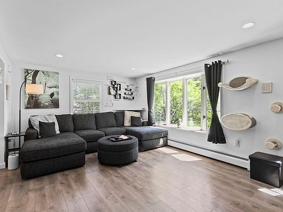 Welcome to 8 Pleasant View Park, a charming condo-style home with zero pesky HOA fees. This 3-bedroom, 1.5-bath home is situated on a quiet cul-de-sac and features an open concept design with a classic modern, light and airy vibe. The first floor offers a sunlit living room with beautiful flooring (2019), and a gorgeous kitchen offering granite countertops, stainless steel appliances, a large island, and elegant white cabinets. There's also a convenient half bath on this l