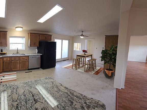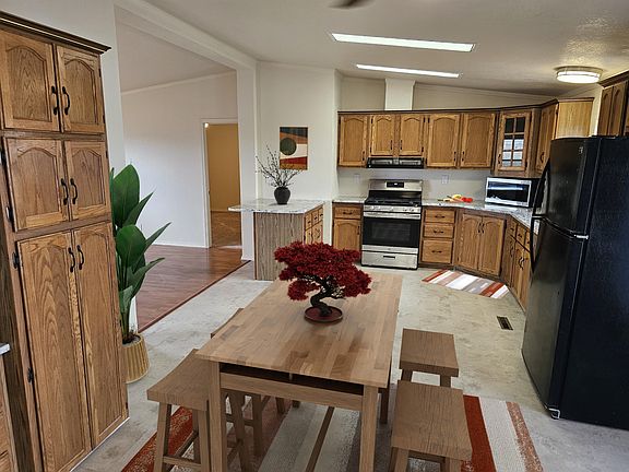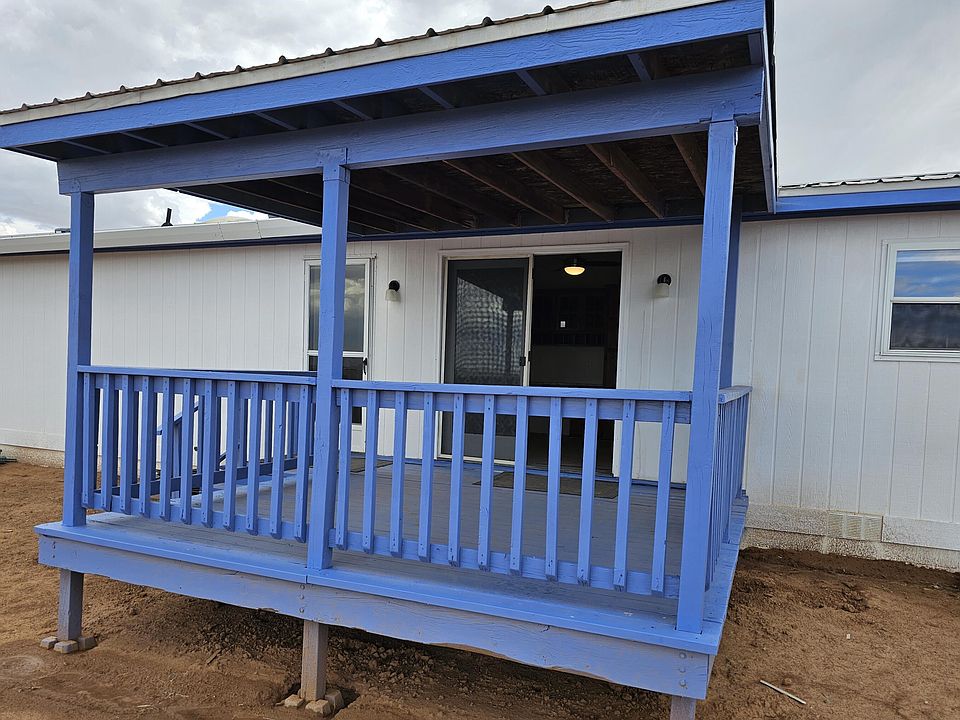 Beautiful home! Ready for your garden and animals! 15 minutes to I-40. 2 acre fenced parcel. Shared well is extra deep. Underground utilities. Horses welcome. home features extra large eat in kitchen plus adjacent formal dining room. Upgraded granite countertops, new stove, microwave, and dishwasher. Upgraded refrigerator in kitchen + refrigerator/freezer in laundry room. Separate primary suite with 2 walk-in closets. Convenient hall bath to bedrooms, laundry room, back patio and kitchen. New flooring in kitchen and bedrooms. 2x6 construction made in Nebraska for high winds and snow. Great entertaining patio just off kitchen. 35 minutes from Abq. Seller will consider $5,000 finance/ closing cost assistance. Concrete foundation meets FHA/VA standards. Totally fenced. Ready to go!