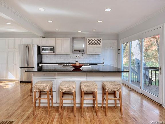 WALK TO THE BEACH FROM THIS FABULOUS HOME ON A PRIVATE CUL DE SAC WITH POOL. This home has an open floor plan with two fireplaces, large island in the kitchen just perfect for entertaining. Open the new sliding doors and spill out to the deck which spans the entire back of the house. Perfect for days spent outside enjoying your tranquil backyard overlooking the beautiful private pool. Large master with balcony. This home has great windows, and sliders throughout making it a bright and airy home. Beautifully maintained, move right into this home by the beach. Situated on .65 of an acre, this home has 1300+additional sq ft in lower level not included in total sq footage. Outdoor shower, pool, and plenty of parking add to this very special home! One Commission Due And Payable Upon Passing Of Title And Upon Receipt Of Funds. Owner /Agent