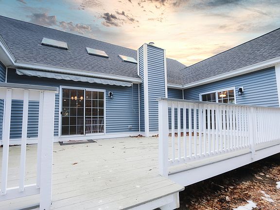 This sprawling contemporary cape style home is nestled in an upscale neighborhood with similar homes. This home has a large kitchen that would be perfect for a gathering or entertaining and equipped with newer black stainless steel appliances. It offers two first floor bedrooms with one offering a large office and its own full bath that leads out to the deck. This area could easily be converted into an in-law suite if needed. Upstairs offers a second living room area with an office nook just around the corner and 4 more bedrooms with one very large primary bedroom that has a balcony overlooking the backyard. There has been a new roof, leach field expanded, paint, new carpet, hybrid water heater, boiler, oversized pressure tank and decking. The opportunities are endless and with this being in the heart of the lakes region you have many public lakes, golf courses, skiing, 4-wheeling and restaurants near by. 4 bedroom septic on file