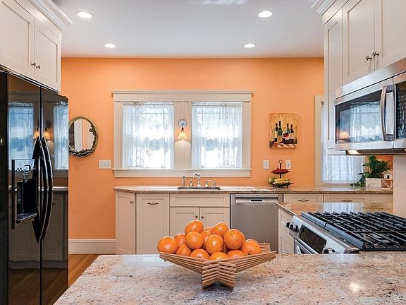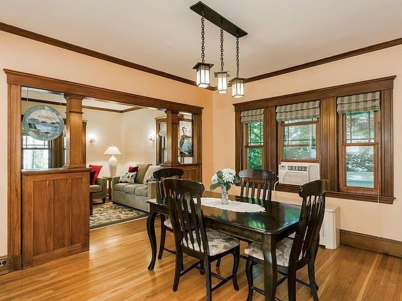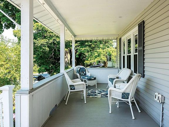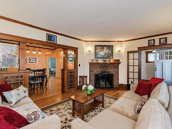 Bungalow style home with build-ins in the living room and foyer. All windows replaced in 2007. Open concept kitchen updated in 2010 with granite counters and stainless appliances. Hard wood floors throughout first floor. Working wood fireplace in the living room. One full bath with tub on the 1st floor. Large upstairs bath added in 2010 with granite counters, very large tiled walk in shower, double sinks and full washer/dryer with folding counters and cabinets. Large unfinished basement with separate entrance from the outside. Backyard boasts a 20x40 Azek deck, stone walls and plentiful plantings designed and installed by a professional Arborist. Front yard landscaped as well. 2 car detached garage large enough to accommodate equipment and shelving as well as 2 cars.