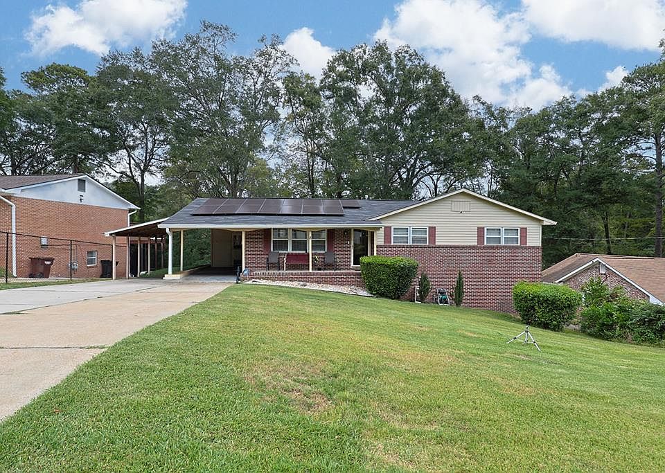 Charming Traditional Two-Story Brick Ranch Five Bedroom, Three Bathroom on approx. .35 Acre lot. The cozy main-level living room creates a warm and inviting atmosphere, The kitchen's eat-in area offers picturesque views of the main-level deck and features stylish luxury vinyl plank flooring. Beautiful hardwood floors continue throughout the main level— blending timeless charm with fresh, modern touches. Enjoy added convenience with a laundry chute from the main level that drops directly into the lower-level laundry room. The fully finished basement, featuring floating wood laminate flooring, expands your living space with a spacious flex/family room, two additional bedrooms, and a full bathroom—ideal for an in-law suite, guest accommodations, or a sports fan lounge complete with a built-in bar. This home is packed with added value, including a newer shingle roof (only 3 years old), energy-efficient solar panels to keep utility bills low, an expansive backyard perfect for entertaining, a covered patio with a ceiling fan for year-round comfort, ample parking with an attached double carport w/ bonus storage room and paved pad with stair access, Plus an outdoor storage shed to keep tools and equipment neatly tucked away. Located just minutes from Midtown and North Columbus shopping, dining, and entertainment. Don't miss this incredible opportunity— schedule your tour today!
