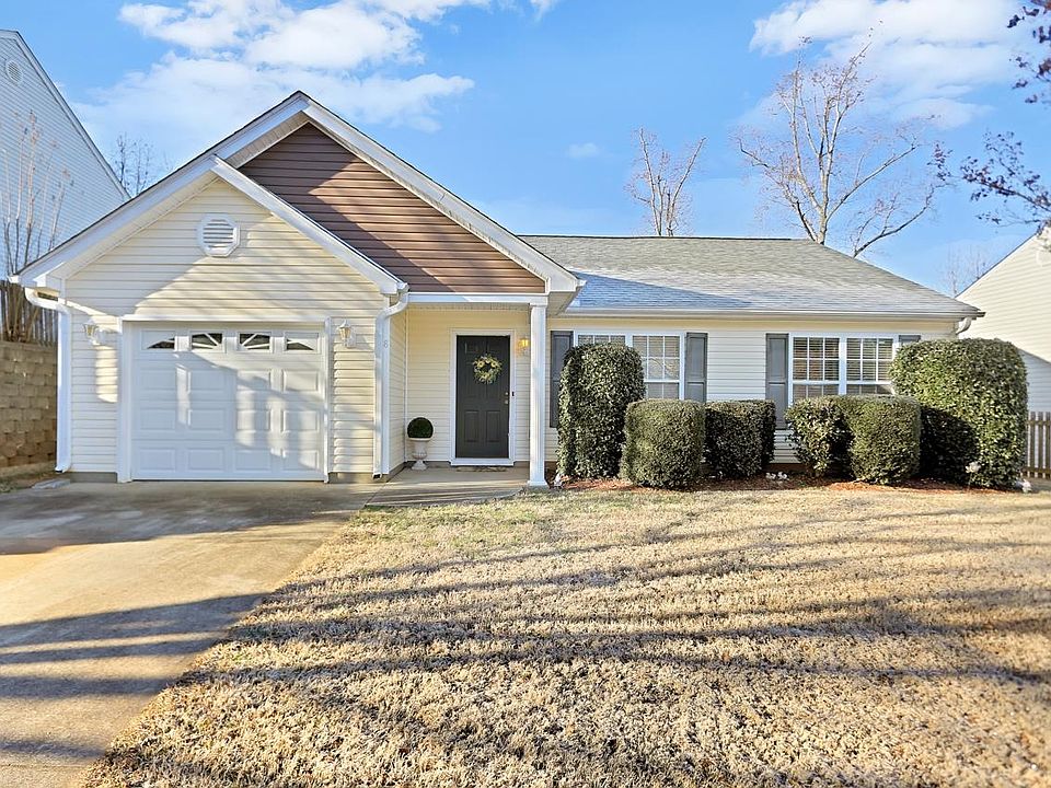 ADORABLE and AFFORDABLE open and split bedroom floor plan. The living room/kitchen offer vaulted ceilings, gas log fireplace, breakfast bar island and dining area. Sliding glass doors open to the huge SCREENED PORCH that overlooks the FENCED YARD. The master suite features walk-in closet. The front bedroom is wired for a projector and offers SURROUND SOUND. The ROOF and HVAC are new in 2020! MOVE IN READY! All you have to do is bring your furniture!