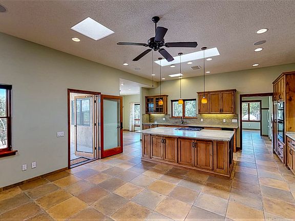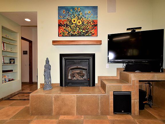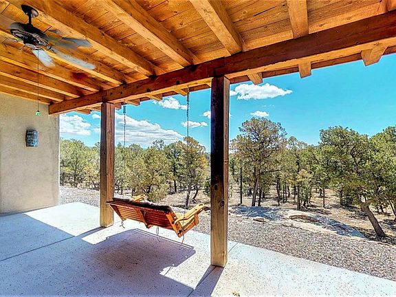 Fall in love with this Light Filled, Open Concept Home in a distinctive gated mountain community, surrounded by forest yet less than 30 min from Santa Fe. 3+ bedrooms and 3 Baths and a possible 4th bedroom with this flexible floor plan. This energy efficient home boasts in-floor hot water radiant heat, passive solar, and an efficient wood stove. The mountain air keeps it cool all summer. The home is completely tiled with extra-wide halls and zero threshold doorways and roomy bathrooms making it comfortable to age in place. A whole house water treatment system, 6" thick well-insulated walls, double pane Pella Pro windows all to keep it warm in the winter and cool in the summer.