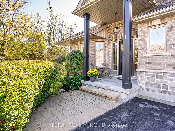 OPEN HOUSE - Sun.Nov.9th - 2:00-4:00pm. Living the dream! Elegant lifestyle in scenic Legacy Pines adult community. Picturesque golf course setting. Stunning premium bungalow overlooking beautiful natural pond and forested views. Spotless well appointed home with upgrades galore. Gorgeous paladian window vaulted great room with stone wall & fireplace, family sized formal dining room, open concept chef's kitchen with custom pull out drawers in cabinetry, gleaming quartz counters, newer tile backsplash, fabulous centre island with wine rack, touchless faucet, pot-lites & undermount lighting. Amazing south facing custom built screened in Lanai with composite decking, natural gas firetable & bbq, and walkout to your own private patio. Retreat to the executive primary suite featuring custom walk in closet with organizers and spacious full ensuite. Main floor also includes a Pretty guest bedroom, full bath and laundry room. Direct access to spacious garage with Epoxy coated floor. Charming wainscotting leads you to the huge rec.room with above grade windows and another stone surround fireplace. Two more bedrooms or home office make this level complete. Well run self-managed condo lifestyle with just 6 homes in this condo pod. Make this your next home in this charming village setting, with nearby Albion Hills Conservation park, Palgrave walking trails and Caledon Equestrian Park.