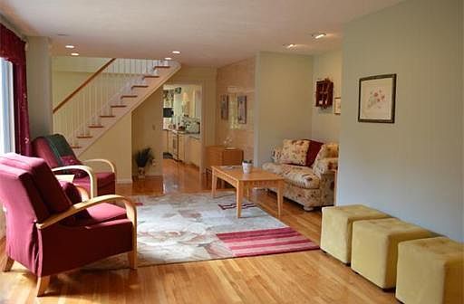 Tucked away,yet near new town center,town pool, rec fields and conservation trails,this builder's own Contemporary 3400 sq.ft. home has great space through-out. Passive solar with casement windowed walls through-out the 1st floor,Sky lites in the office hall,family room,dining room,kitchen ,this home basks in light. Hardwood through-out 2nd floor with 2 bedrooms with walk-in closets,master has His and Her walk-in closets and granite wrapped master bath with glass block detail & heated towel bar. The Dining room and Kitchen as well as the Family room have great views to the private level yard. Updated systems.Pride of ownership through-out. This one is special!