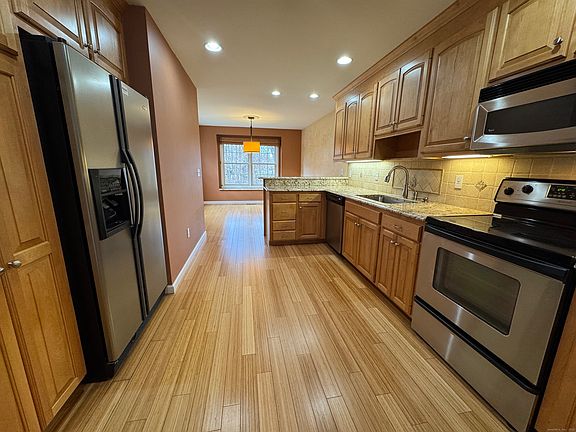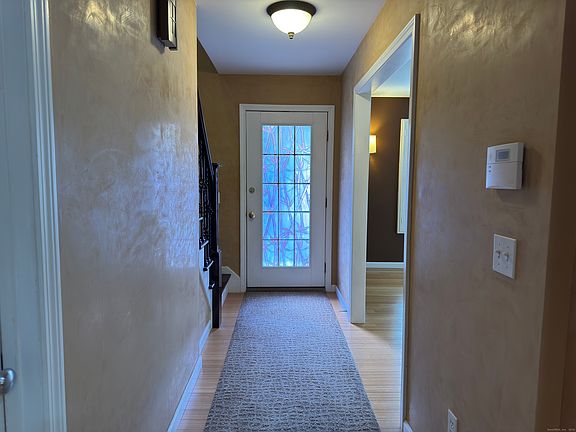 Welcome home to this beautifully maintained 2-bedroom, 2.5-bath townhouse tucked inside a quiet Broad Brook community. The main level features bamboo flooring, a bright living room with custom interior shutters, recessed lighting, a gas fireplace, and sliders leading to a pressure-treated deck overlooking peaceful New England views. The kitchen offers ample cabinetry, granite countertops, a tiled backsplash, and a breakfast bar that opens to the dining area-an ideal setup for cooking or entertaining. A convenient half bath completes the first floor. Upstairs, you'll find bamboo flooring, two generously sized bedrooms, each with excellent closet space. The primary suite includes double closets and a private full bath. The lower level adds even more versatility with a tastefully finished space, ceramic tile flooring, an office with French doors, and a walk-out for added convenience. Mechanical updates include a new furnace and central air unit (Sept 2025). Professional photos coming soon. Professional photos coming soon