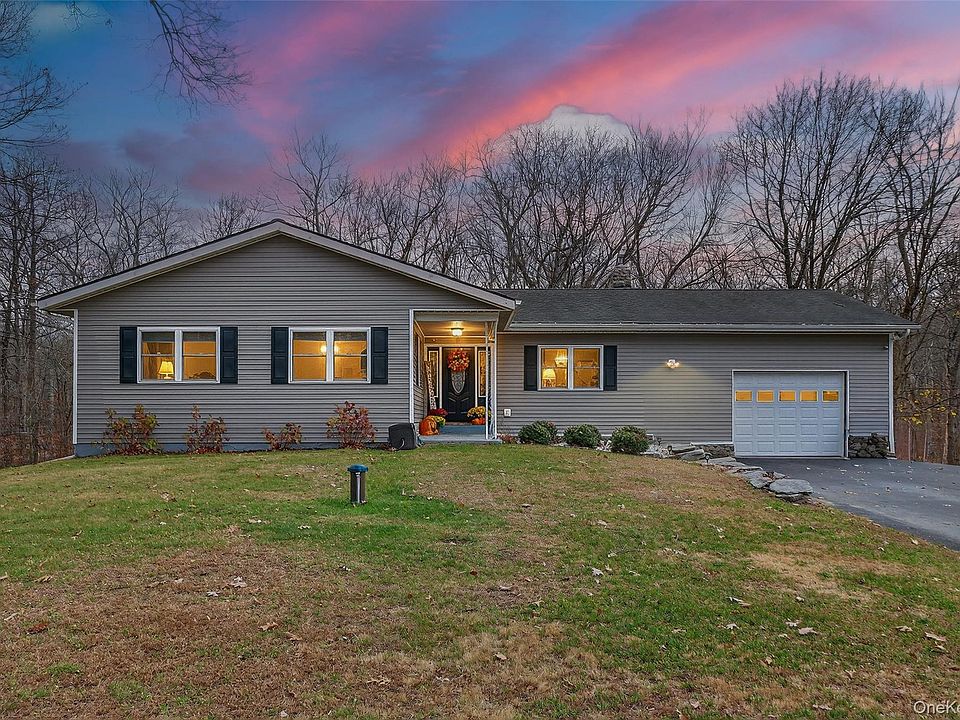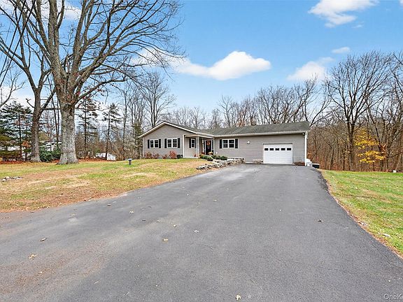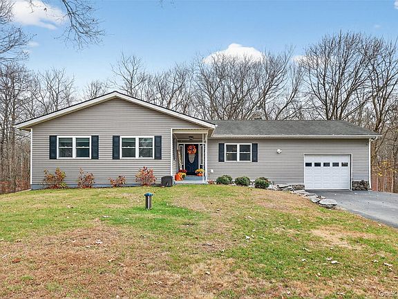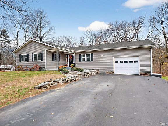 Welcome to this meticulously maintained 3-bedroom, 2.5-bath ranch nestled on .87 private acres in the Hamlet of Wallkill. Completely remodeled in 2016, this home offers the perfect blend of modern comfort and timeless style. Step inside to 1,756 sq ft of main-level living, where natural light pours into an inviting open floor plan. A spacious living and dining area flows seamlessly into the stylish chef’s kitchen, featuring sleek black cabinetry, stainless-steel appliances, and tile backsplash. Laundry room off kitchen with plenty of space for a pantry leads to back deck. The primary suite features ample closet space and an updated full bath. Two additional bedrooms and a full hall bathroom complete the main level. Need more space? The fully finished lower level provides a versatile recreation area, complete with a half bath and cozy gas fireplace—perfect for entertaining, movie nights, or a home gym. Major system upgrades provide peace of mind, including a new well, well pump, and leach fields installed in 2020. Outdoors, enjoy the serene and wooded landscape and peaceful surroundings on a dead end road. Located near shopping, restaurants, highways, and all that the Hudson Valley has to offer, this home combines convenience with comfort. Truly move-in ready—just unpack and enjoy.