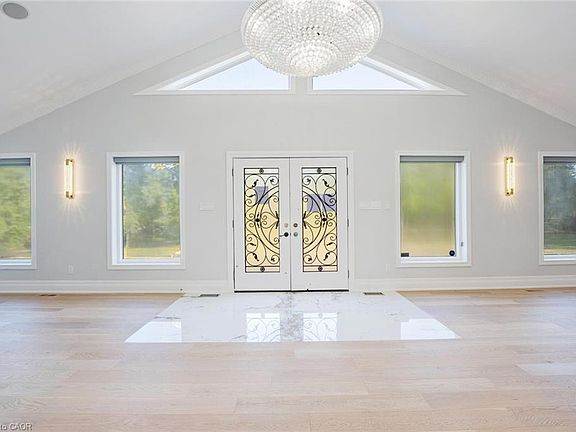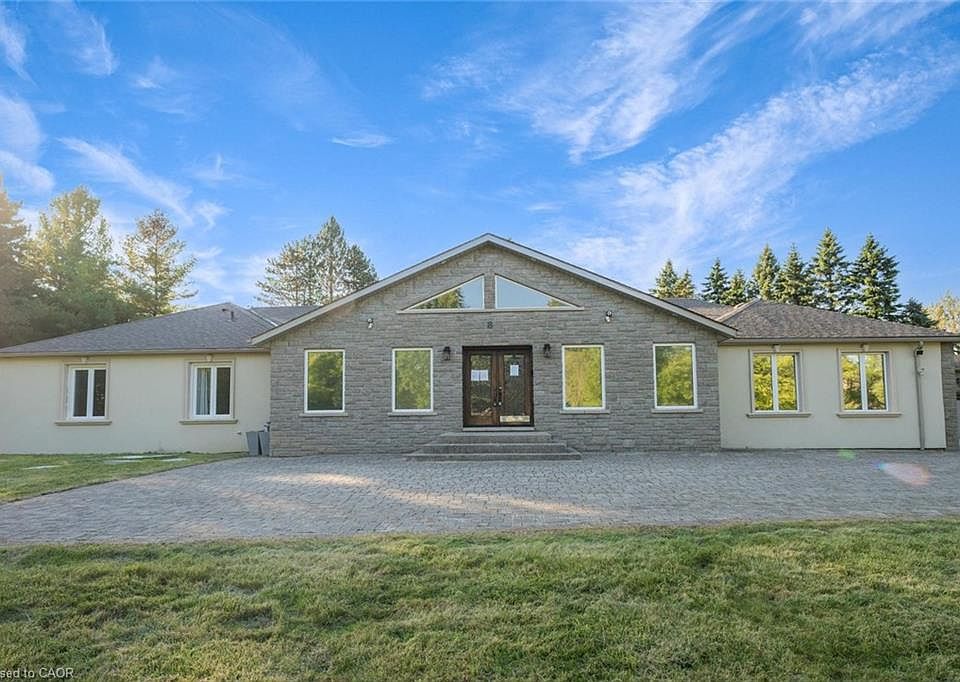 Modern, spacious, and bright 5+1 bedroom, 7 bathroom bungalow nestled on a scenic and private lot. A tree-lined driveway welcomes you to this stately home featuring extensive driveway parking and a 3-car garage. From the moment you step inside, you’ll be impressed by the tasteful flooring, stylish tones, and tall ceilings. The spacious foyer leads into a large, open living room with skylights, serving as the focal point of the home. The beautifully designed eat-in kitchen offers abundant cabinetry and counter space, a large centre island, a breakfast area with a backyard walkout, and convenient access to a 4-piece bathroom. A separate dining room down the hall provides the perfect setting for gatherings. The large primary bedroom is a private retreat with a walk-in closet and a 4-piece ensuite featuring a skylight. Four additional spacious bedrooms, each with access to a bathroom, along with ample storage and an inside entry to the garage, complete the main level. The partially finished basement extends the living space with a recreation room, family room, two large bonus rooms, a bedroom, two 3-piece bathrooms, and abundant storage. Surrounded by mature trees, open green space, and natural beauty, this home offers the ideal blend of privacy and convenience. Your next home awaits!