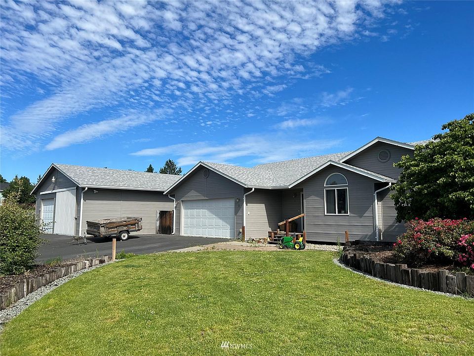 Aston Estates - Close to Shopping, Restaurants, and Service Amenities - HOME & Large SHOP on Approximately 1 Irrigated Acre - Home features two Primary bedrooms/3 bathrooms, ADA Accessible home & bathroom, kitchen w/ breakfast bar, dining room area w/ slider out to deck which has partial covering, living room w/ wood stove. Two car attached garage + large 1,200 square foot shop. NEW roof 2020. Upgraded heat pump 2015. Just Repainted Exterior June 2022. Chicken coop, green house, & utility shed stay. Fenced & cross fenced. Lots of gates! You can drive through property. Underground sprinklers on timers + risers on back of lot. Large garden spot & 100+ trees on property + established asparagus & raspberry beds. $399,900 H-3067/MLS1953705