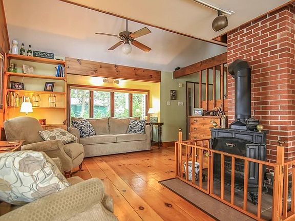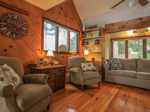 Lake Lashaway Waterfront!!! This home offers 3 full floors of living space with 100' of water frontage and dock space for 3 boats!! Open concept living & dining rooms with direct access to the large deck overlooking the water, cute galley kitchen, 1st floor bedroom, full bathroom and laundry. The 2nd floor offers a large open loft and a bedroom. The fully finished walk out lower level offers a large family room, a full bathroom, and 2 more rooms! Brand new roof on the garage and a newer roof on the house! Nice big yard, huge 2 car detached garage with plenty of storage space above, paved driveway & beautifully maintained lawn! Great commuter location with good access to the MA Pike, Rts. 84, 9 and 20!