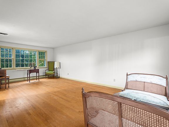 Situated at the end of a cul-de-sac, this 4-bedroom, 3-bath colonial offers privacy, beautiful land, and great curb appeal on 1.76 acres surrounded by mature trees. The screened-in porch off the kitchen overlooks the backyard, creating a perfect spot to enjoy crisp fall mornings. The main level offers hardwood floors in the formal dining room and spacious living room, along with a den featuring wood floors, built-ins, and a fireplace. A first-floor bedroom provides flexibility for guests or a home office. The eat-in kitchen showcases vintage charm with updated flooring and direct access to the screened in porch. A freshly painted half bath with laundry hookup, new flooring, toilet, and vanity completes the first floor. Upstairs, the spacious primary suite features hardwood floors and an updated en suite bathroom with a tiled shower, new vanity, and fresh paint. There is also two additional bedrooms with hardwood floors and a guest bath with tub on this level. Recent updates include the roof and siding (approximately 10 years old), a new well tank and pump (Feb 2024), and a water heater replaced within the last year. The home also features existing ductwork, offering a convenient starting point for adding a future central air system. The unfinished basement provides generous storage or the opportunity to create additional living space. Conveniently located near Routes 185 and 178 and minutes from shopping and dining, this home blends classic charm with modern pract Subject to Probate Court Approval
