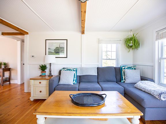 Tucked among mature trees, this beautifully updated ranch combines a convenient location with modern comforts. Inside you are welcomed by stunning wide-pine and fir floors, exposed beams, and a sun-filled open floor plan. An inviting eat-in kitchen boasts granite countertops, stainless steel appliances, and a glass door opening to a new outdoor patio space allowing for an abundance of natural light. The kitchen and dining areas flow beautifully into the living room with access out to a new deck. A spacious master bedroom and 2 additional bedrooms complete the main level of this home, while the entrance level offers a convenient laundry room and mudroom with built-ins. Surrounded by beautiful landscaping, relax on the back deck in the privacy of your sprawling fenced in yard or entertain on the new patio. Situated on a dead end street, enjoy this convenient location just minutes to West Falmouth and Portland amenities, I-95, and Portland's trail system.