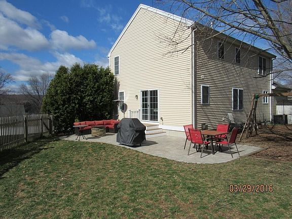 Welcome home! Young 2004 4 bedroom 2.5 bedroom colonial located on a cul da sac. Beautifully maintained. A great house for entertaining! The front to back family room is spacious to accommodate many guests. The eat in kitchen with hardwood flooring stainless steel appliances and granite countertops for preparing that delicious meal. The dining room with its beautiful lighting opens out to the recently installed pavers patio for seasonal entertaining. Master suite with cathedral ceiling and master bath. 3 additional nicely sized bedrooms one with a walk-in closet. All kitchen appliances included also washer and dryer!!! Central air. Finished lower level is a must see. Added bonus... kids play house in back yard. Great location in historic Hopedale walk to the park and parklands. No showings until the open house.