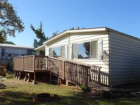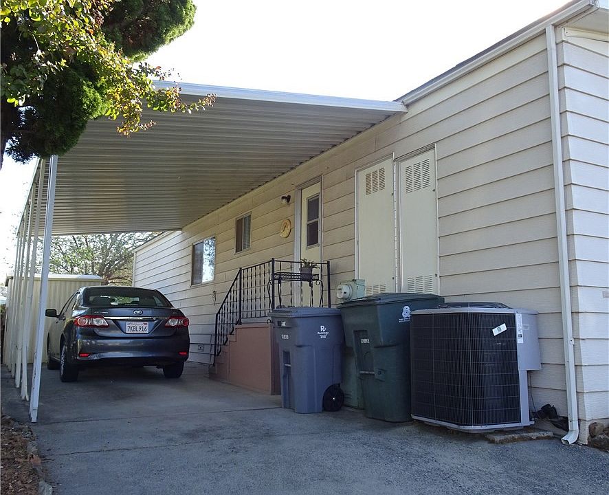 There is a small deck, partially covered, overlooking said open space, partially fenced yard, nice landscaping. Living room has two large windows that let in all the light, and provide nice view. carport and small tool shed.