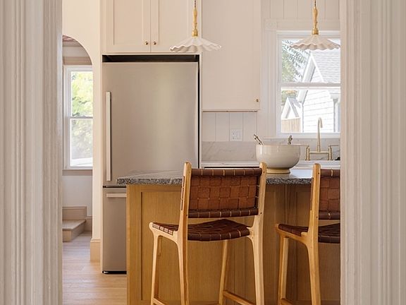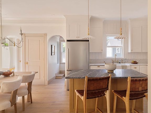 Welcome to 8 Rowe Street, a Colonial home reimagined, featuring timeless New England charm and modern designer details. A checkered tile entry and statement lighting set the tone, leading to the show-stopping kitchen, featuring an arched built-in display, a dream butler’s pantry, an oversized stone backsplash layered with vertical shiplap, and a custom hood. The jewel box powder room wows with Calacatta Violetta marble and a whimsical swan faucet, while the mudroom delivers everyday organization. Upstairs, three spacious bedrooms await, with a finished lower level offering versatile flex space. Enjoy a private yard, deck, and two off-street parking spots. Located minutes from the city and walkable to Stoneham’s booming downtown and steps the the Greenway, this home is dripping in designer appeal and won’t last long.