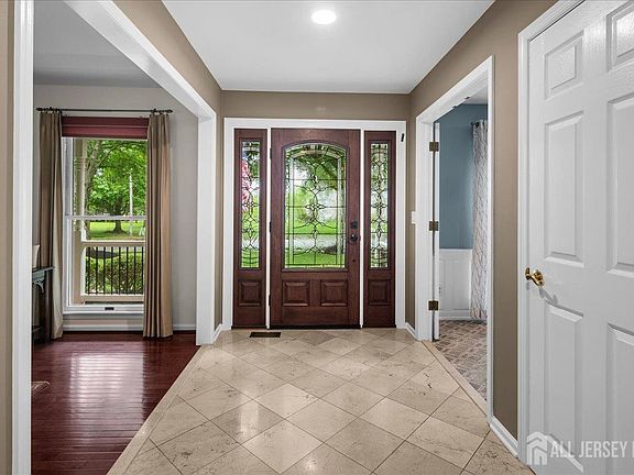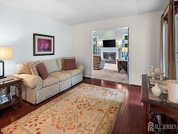Beautifully maintained 4-bedroom, 2 full and 2 half bath home situated on a professionally landscaped corner lot in the heart of Plainsboro. Just minutes from the Princeton Junction train station and part of the highly rated West Windsor-Plainsboro school district, this home offers the perfect blend of comfort, space, and convenience. Enjoy a private backyard retreat featuring an in-ground heated pool with updated components: new pump (2023), liner (2017), heater (2018), and filter (2019), all enclosed by a black aluminum fence. A low-maintenance TREX deck with updated railings provides the ideal space for outdoor entertaining. A convenient rear entry leads directly to a half bath, perfect for pool guests. Inside, the remodeled kitchen includes rich wood cabinetry, a large center island, stainless steel appliances including a new slide-out microwave, a beverage center with lighted cabinets and beverage fridge, and a roomy pantry with a pocket door. The first floor also includes a formal dining room with hardwood flooring and medallion inlay, a home office with French doors and wainscoting, and an expanded family room with vaulted ceilings, a gas fireplace, and abundant natural light from windows on three sides. Upstairs, the primary suite offers a large closet, ceiling fan, and en-suite bath with dual sinks and a private commode. Three additional bedrooms include one oversized space with vaulted ceiling and hardwood floorsperfect for a guest suite, second office, or future live-in suite with potential for an added bath. The updated hall bath features tile flooring, tub surround, and double sinks. Major updates include a new roof (2022), repaved driveway (2019), replaced garage doors and shutters (2021), a two-zone HVAC system, and an owned solar panel system that provides near net-zero electricity costs. Showing 6/5