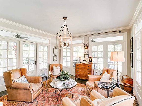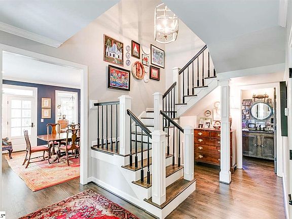 Described by the sellers as their "Farmhouse in the City", this stunning 4 bedroom, 3 1/2 bath home is move in ready! As you enter the home from the wraparound porch, you will notice the attention to detail. Beautiful moldings and light fixtures throughout. There is a sunlit living room and spacious dining room with a fireplace. The renovated kitchen is the heart of the home and a chef's delight and opens to the great room. The kitchen features a farm sink, Wolf range with 6 burners and a griddle, double ovens, Viking refrigerator, a drawer microwave, an ice maker and beautiful Calcite countertops. Make sure you check out the soft close cabinetry, the seller designed paper towel drawer and the special knife and spice drawers beside the range. The seller has named the room off of the kitchen "Mom's Paradise". It has wall to wall shelving, a TV spot behind closed doors, pantry cabinet, washer and dryer space, drink refrigerator, and a perfect coffee and toaster oven space. You will love the cozy great room with a wood burning fireplace and a vaulted ceiling with 200 year old beams. The old laundry room has been converted to a pet room and is closed off by a barn door. There is a sink and the washer and dryer hookups, as well as the access to the laundry chute are still there. The spa like master suite is located on the main level and has a jetted tub, double sinks, separate shower and large walk in closet. Upstairs you will find 3 additional bedrooms, 2 bathrooms, a bonus/craft room, storage closet and a media room with 5.1 surround sound. The outdoor living space is truly amazing. From the screened porch with wood burning fireplace, to the large brick patio that features permanent cafe lights and a "party room" with a TV for outdoor viewing. On the other side of the screened porch is a grilling area with crushed slate and a wood shed so that you can store your firewood and cooking wood. The yard is fenced and has updated landscaping, landscaping lights and a full irrigation system. This is a one of a kind home in one of Greenville's most desirable neighborhood. Spaulding Farm boasts award winning schools, a clubhouse, 2 pools, tennis courts, exercise facility, a walking trail and a new playground. Spaulding Farm is a great place to call home!