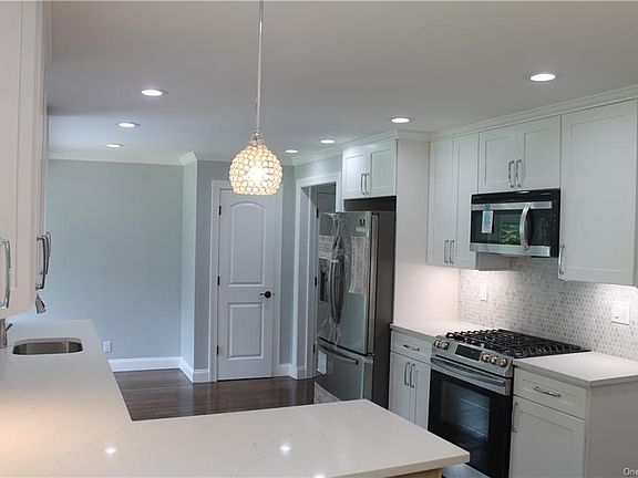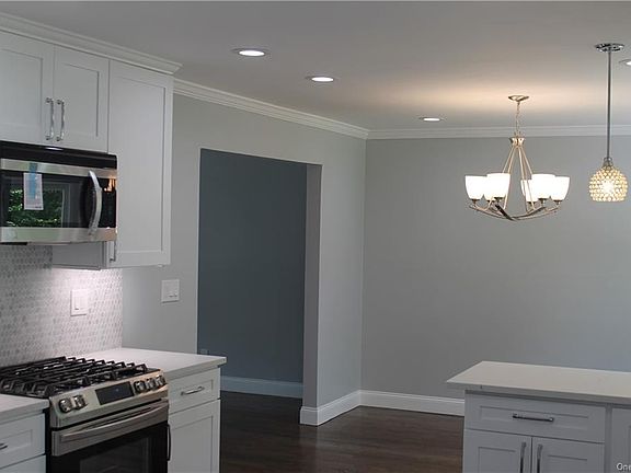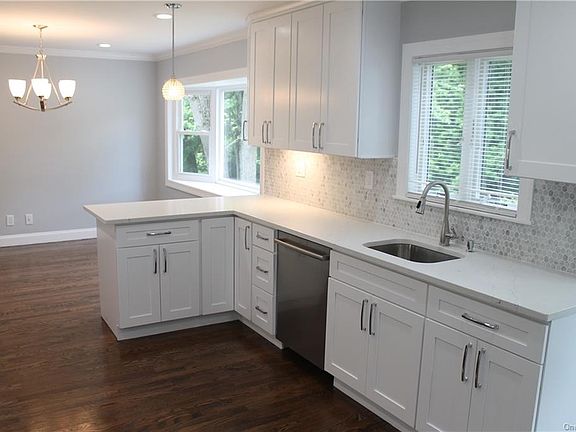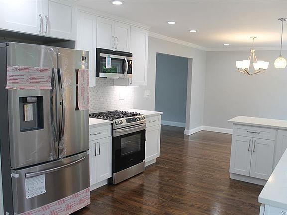 Beautifully renovated four bedroom, three bathroom split level home in Larchmont Woods. This home offers many updates including roof, hardi-plank siding, windows, electrical, plumbing, kitchen, bathrooms, beautifully stained hardwood floors, interior and exterior doors, molding and trim, gutters and leaders, garage door with electric opener, oversized rear patio, landscaping and lawn sprinklers. Nothing was left untouched in this home and workmanship is excellent. The master bedroom offers a master bath and two walk-in closets with great cross ventilation. There is a family room just steps down from the open concept updated kitchen as well as a lower level for utilities and plenty of storage as well as access to rear patio. Taxes do not reflect NYS STAR school tax exemption.