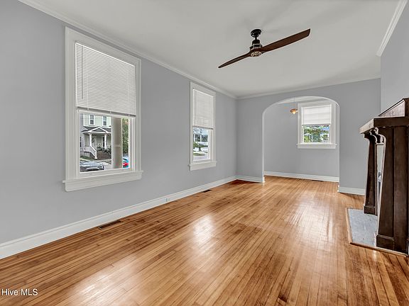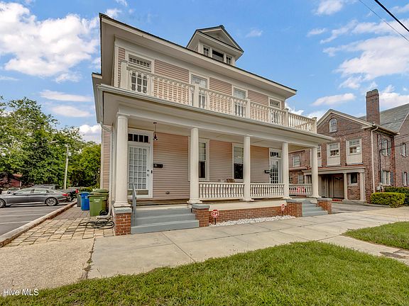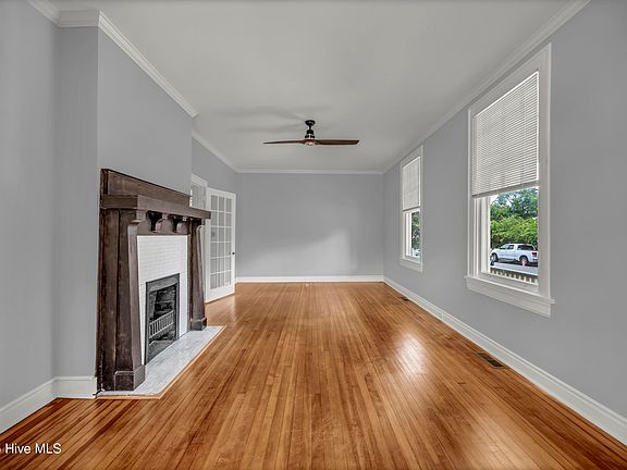 Welcome to the downstairs unit of the historical Ahrens House, located in Historic Downtown Wilmington. It is within walking distance to the Cape Fear River and the Soda Pop District. This beautiful home with a covered front porch features high ceilings, antique hardwood flooring, optional alarm system and generous size rooms. Enter into the large living room that features a decorative fireplace and ample natural lighting. Entering the hallway, you will find the laundry closet with full size stack washer and dryer. The primary bedroom also features a decorative fireplace and an ensuite bath with tile flooring, upgraded vanity, built ins, and a claw foot tub/shower combo. The other 3 oversized bedrooms, two of which have an adjoining door are bright and sunny. The kitchen is equipped with granite countertops, tile backsplash, matching white appliances and an access door to the back deck. Just off the kitchen is the secondary bathroom that features tile flooring and a walk-in shower. There is access to an additional secured storage room located in the basement of this home. Parking lot is not included with this rental. Street parking is located on S 7th and Market St. No smoking. Cats are permitted with non-refundable pet fee.