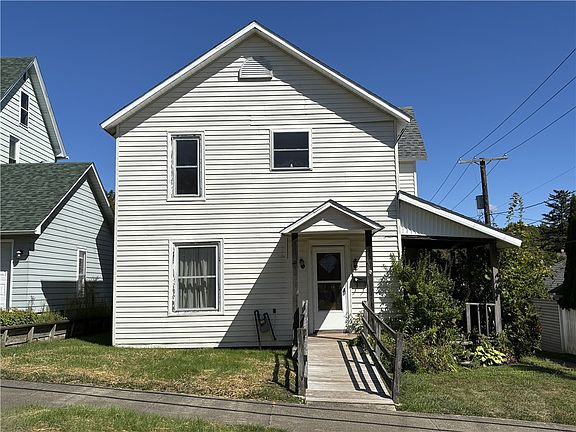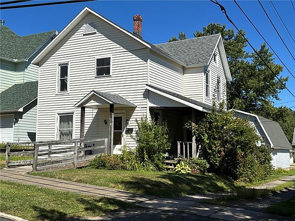 Looking for a rewarding project? This 4-bedroom, 2-bath home gives you the chance to customize it your way. The kitchen features plenty of cupboard space and a breakfast bar, with a refrigerator, gas range/oven, and microwave included with the sale. With 1,600 sq. ft., the home offers spacious rooms and a convenient pantry off the kitchen for extra storage. Both floors have full baths—one with a tub and shower, the other with a stand-up shower with built-in seat. Some woodwork has already been stripped, ready for the stain of your choice. All four bedrooms are on the second floor and have closets. In addition to the new roof in 2022, the exterior boasts vinyl siding, replacement windows, and a covered side porch leading into the kitchen. The backyard is perfectly sized for adding a deck and fencing it in for privacy.