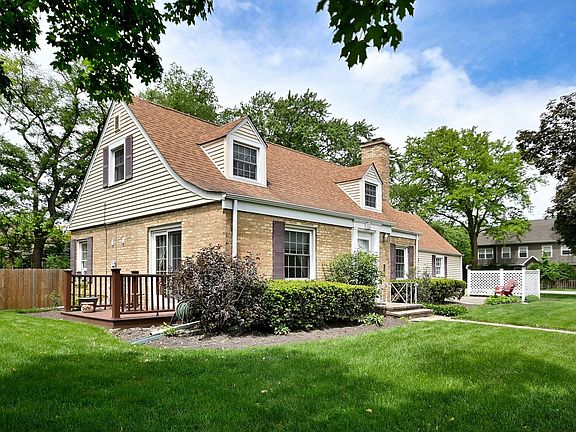 Center entrance Cape Cod with 3 bedrooms and 2 baths. Additional room on first floor currently used as dining room could be used as fourth bedroom (has closet) or office with sliding glass door to small deck. Hardwood floors thru out. Gas fireplace in living room. Breeze way has sliding doors to patio and attached 2 car garage. Spacious basement with large laundry area, office area, utility room, closet and more. Boiler 2019 (no a/c) Home sits on a 60 by 127 lot. Field, Lincoln and Maine South school district