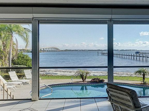 Your Own Private Beach in this WIDE Waterfront Pool Home awaits YOUR boat and dock. There are NO Fixed Bridges. The home has tile floors though out and offers split bedroom plan. The heated pool is on the Intracoastal. The screened and enclosed porch is overlooks the RIVER and offer access to a full bath after your time in the Pool or on your boat. The Dock Study has been done and Dock Approval from FLORIDA DEPARTMENT OF Environmental Protection has been obtained. File is Attached to MLS Listing. General Permit (GP), pursuant to Rule 62-330.427, Florida Administrative Code (F.A.C.) to construct a 1,480 sq. ft. dock consisting of a 4 ft. by 330 ft. (1,320 sq. ft.) access walkway and a 10 ft. by 16 ft. (160 sq. ft.) terminal platform with a boatlift. Approximately 240 sq. ft.