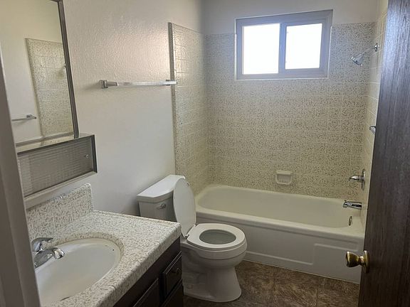 2 bedroom, 1 bath, single level unit with small fenced backyard, Middle unit of a triplex, Dual Paned Windows.