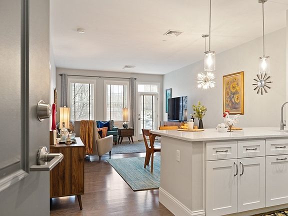 Absolutely exquisite & BETTER than NEW! This very spacious one bdrm unit is at the ideally located Postmark. downtown restaurants, shops & commuter rail are just "outside" your door. This luxury building is the place to be...no other complex compares. It's not just a condo, it's a lifestyle. It's fully equipped with ALL the upgrades...custom cabinetry, quartz counters, tiled back-splash, high-end GE Cafe' appliances, wood floors THROUGHOUT, custom closets, designer lighting, & a spa like bath with stunning tile & double vanity...accessed from the hall AND the bdrm! The living space is open & HUGE, allowing for a full dining experience, along with generous spaces for seating & entertaining. The bdrm will transport you to a fine hotel! A full sized washer & dryer are hidden away, along with extra storage space. Unique to this unit...a HUGE PRIVATE patio. Use this private entrance...you'll be right at home. Garage parking, a common roof deck w/gas grill, a gym, club room & more! WOW!!