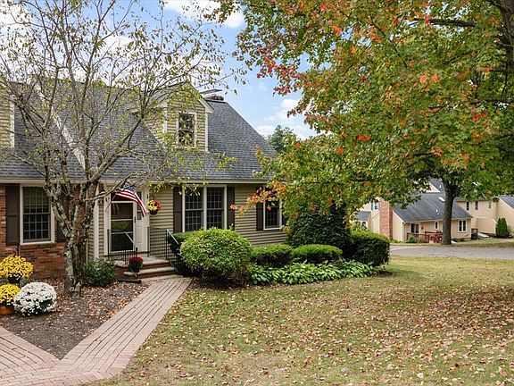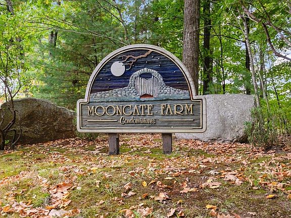 Welcome to Moongate Farms Condominium. This cape style end unit has first floor living space. Primary bedroom has its own bathroom with a newly installed tiled shower. There is plenty of closet space in the primary as well as in the second bedroom. The eat in kitchen area has plenty of space for entertaining. The spacious living room with gas fireplace has a slider out to a private deck. Upstairs you will find two bonus rooms with skylights that add natural light. Downstairs, the basement has a finished room that could be used as an office or family room. There is also a laundry room and partially finished work space. The cellar has two sliders that go out to the back yard. Detached one car garage for easy parking. There is no age restriction and pet friendly. New carpeting and flooring, as well as a new a/c system