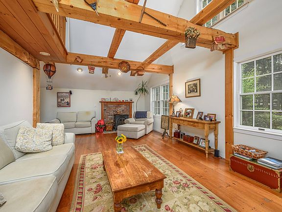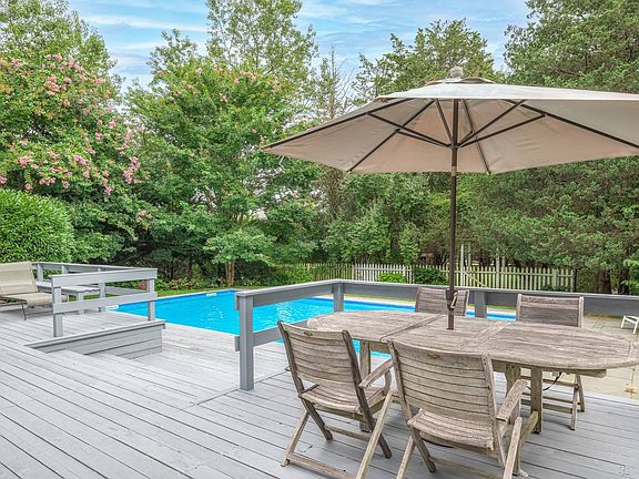 In a quiet coastal community close to bay beaches, marinas and waterside dining, this traditional Hamptons escape clad in cedar-shake siding is immediately charming. Sited on a shy acre, the 2-story home offers 2,679 +/- sq. ft. of luxury living space, 4 bedrooms, 2 full baths, 1 half bath, 2 fireplaces, and a large heated pool. Inside, find bright and open interiors with beautiful hardwood floors, highlighted by the large great room with double-height ceilings and gorgeous exposed antique beams and balcony. The kitchen is well-sized with a breakfast nook as well as an adjacent dining room with sliding doors that lead to the pool and patio. A versatile den can serve as a home office or library with built-in bookshelves, wood-burning fireplace and a floor-to-ceiling glass slider that leads the patio. Bedrooms are well-sized and ready to accommodate loved ones and guests, including a large ensuite primary with fireplace and a convenient first floor bedroom with private patio. The rear grounds are fully fenced with mature plantings for privacy. Multiple access points to the patio invite morning coffee, dining al fresco, and sun lounging overlooking the large pool. Community Tennis. Located just moments from the water with multiple marinas, bay beaches, and waterside dining all within close reach.