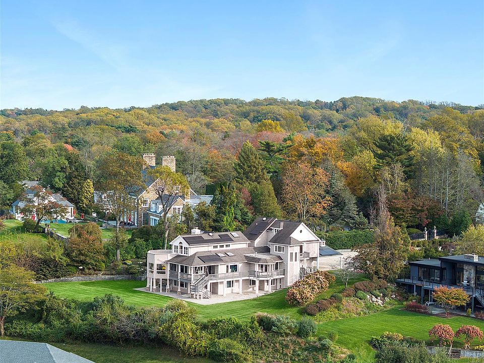 Stunning waterviews from almost every room, multiple decks and rooftop of the Long Island Sound, Dosoris Pond and NYC skyline can be seen from this homes' unique high vantage point. ALL NEW RENOVATIONS COMPLETED 2022!! As you enter the newly paved stone driveway with parking for multiple vehicles, you are surrounded with lush gardens and waterviews. This is only the beginning, as you continue along towards the back of the home you will encounter new bluestone patios, a refinished wraparound upper deck and immense emerald green lawns. Once inside this newly equipped SMART HOME with solar heating you will find an enormous eat in kitchen, formal dining room/den with fireplace, formal living room, sunroom and an office overlooking the spectacular grounds and waterviews. Enjoy sunsets over the NYC skyline just outside your kitchen window!! Upstairs the primary en-suite has a double spa tub, standalone shower, double sinks and a walk in closet. The ground level recreation room has a new a bar, 3 additional bedrooms/gym and a laundry room with outside entrance. Adding to the uniqueness of this home is a large one bedroom guest suite with a separate outside entrance, living room, eat in kitchen, full bathroom, a deck and a spiral staircase leading to a bonus home office/retreat space all with breathtaking waterviews!!