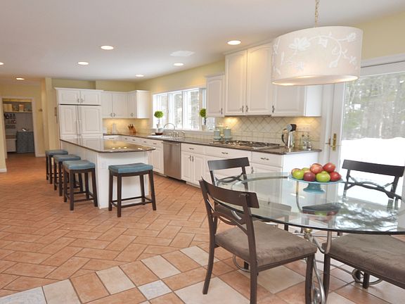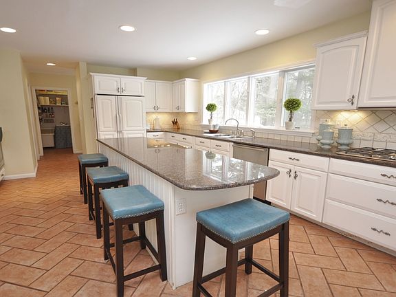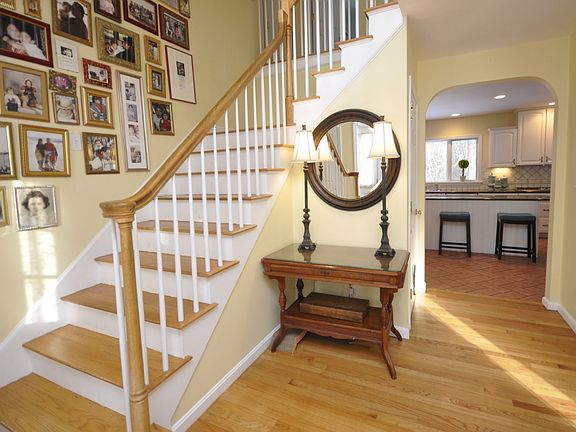 This Center Entrance Colonial makes you feel at home the minute you arrive. The immediate sense of warmth offered by the sunny yellow walls and Tuscan tile floors invites to you sit and take in the view through the four side-by-side windows. Large kitchen features gas stove, walk in pantry, white cabinets, granite countertops and 9ft island. Entertaining is a breeze with this fluid floor plan. The eat-in kitchen flows into a spacious family room and through to a 13 x 24 foot deck that leads you back into the kitchen. 4BRs, 2nd flr laundry, 2.5 ba provide the family with daily functionality, while the Master Suite is an oasis with soaring ceilings, central fan, & hwfs. The balcony, facing a private yd, offers romance and relaxation, while the deep jacuzzi tub and steam shower offer luxury. 3rd Floor Bonus Room to be used as 5th BR, game room, office or studio. Make this your dream home.