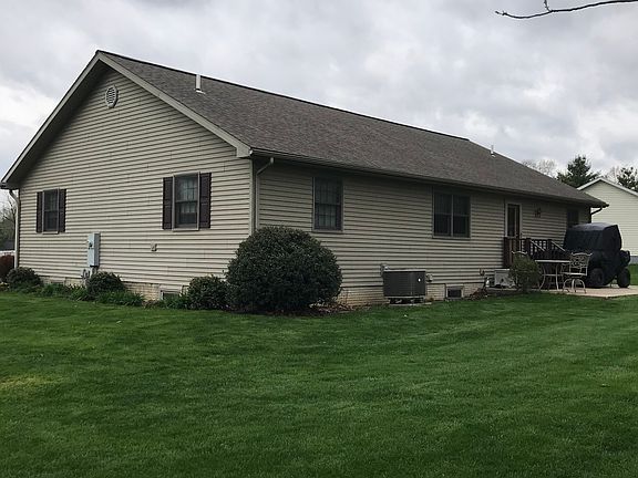 Built in 2005, this 3 bedroom, 3 bath home is situated in a newer cul de sac on the edge of town! Partially finished basement with stamped concrete walls. Kitchen appliances convey. Laundry on main level. Master suite with tub/shower in master bath. Main floor bath includes a walk in shower with seating. Beautiful oak trim and doors throughout. Gridded windows with custom made window coverings. Oversized 2 car garage and a 10 x 14 shed for outdoor storage. Large pie shaped lot in great neighborhood.