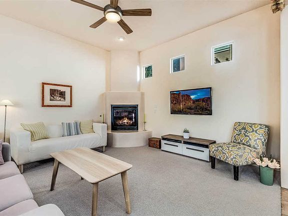 Home sweet home! This place is a gem and you will smile upon entering. With new carpet and tiled floors, the soft palette is soothing and warm. There is an office or den in addition to the two bedrooms that are separate for added privacy. Open concept living, dining and kitchen all open up to the private side courtyard that is completely finished with great portal with built in bancos, wood burning fireplace, and flagstone. Really nice hot tub for soaking and enjoying Santa Fe's awesome weather and clear nights. The master suite offers a generous and well appointed bath and large walk-in closet. Other upgrades include radiant heat, upgraded maple cabinets in the kitchen and bath, solid wood doors, two car attached garage and landscaping. Come see this one owner home and check out the wonderful community of Rancho Viejo with over 12 miles of walking trails and community parks. Find out why all the neighbors claim this is the best place to call home in Santa Fe!