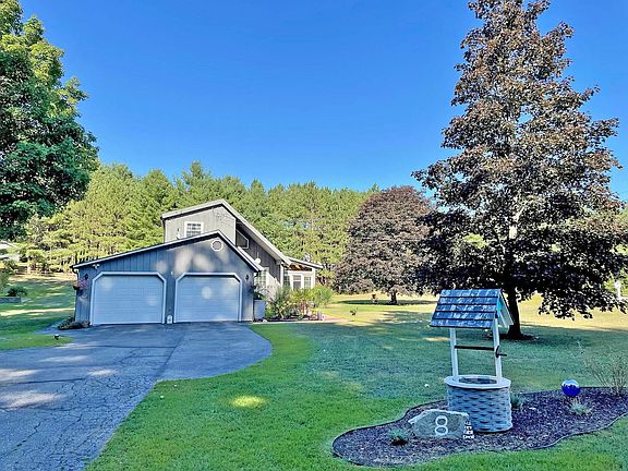 This turnkey contemporary home in Vernon has been updated and meticulously cared for by the current owners. Located in a quiet and well kept neighborhood, this property offers it all. This three bedroom home sits in the middle of a cleanly landscaped yard surrounded by mature Japanese maple trees, blueberry bushes and more potential gardening space. The freshly painted back deck overlooks a fire pit for hosting, a large shed with electricity and the surrounding neighborhood beyond. When you arrive home through the attached garage you will love the dedicated mudroom space for taking off your boots in the winter. The kitchen features an island sitting directly next to a dedicated dining room perfect for hosting guests. The large living room space has a vaulted ceiling and newly installed mini split unit as well as freshly stained hardwood floors. The primary bedroom with private bathroom is located on the first floor making this the perfect first floor living option. In the basement you will find a pellet stove for warmth, a dedicated laundry room along with an additional large finished living space. Best of all, with all the work done by the current owners, including a new roof, radon mitigation system and updated septic system means you can put your feet up and enjoy the property for years to come. This home checks all the boxes!