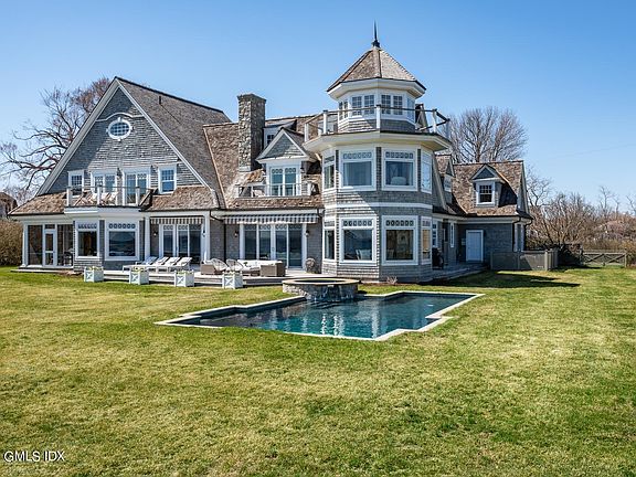 Welcome to Soundhaven an exquisite 6,528SF residence in exclusive Shorehaven. The Hamptons-style shingle showplace sits on one acre with 170 feet of water frontage and a private dock. Interiors are filled with open-water and golf course views, handsome wood floors and millwork. A two-story foyer opens to formal living and dining rooms. The open chef's kitchen sits alongside a breakfast room and family room. A wide deck overlooks the vast lawn, heated pool, hot tub and cabana. Above, the owner's suite offers a terrace, sitting room and en suite bath. Well appointed secondary beds/baths, game room, powder room, office, screened porch, laundry. Deep-water dock, ramp, float and mooring. Gated drive and three-car garage. Minutes from Shorehaven Club, yacht club, marina, parks, beaches