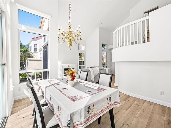 Perched high on one of the most desirable streets in this gated neighborhood, this home enjoys sweeping canyon views and distance ocean from both the ground floor and the upstairs balcony. The flexible floor plan includes 3 bedrooms (with the downstairs bedroom currently used as an office) and 3 full bathrooms. A private front courtyard leads to the double door entry, opening to soaring ceilings, formal living and dining rooms, and walls of windows designed to capture the picturesque canyon scenery.