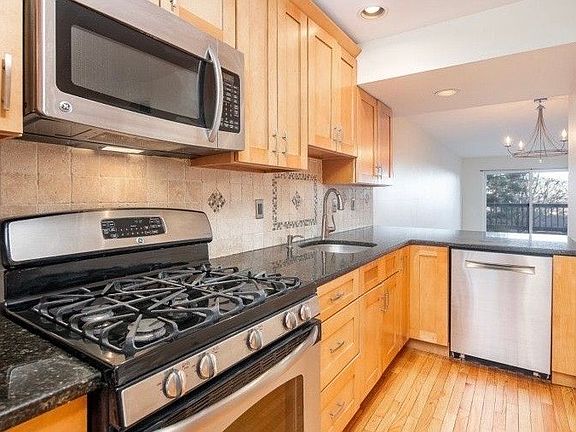 The stylish kitchen is equipped with granite countertops and stainless steel appliances. Upstairs, the expansive primary suite includes dual closets and a spa-like en-suite bath with a soaking tub and shower. The second bedroom also has its own private bath. This unit comes with convenient in-unit laundry. Step out onto your private terrace with your favorite drink and enjoy sweeping view of NYC skyline. Let's not forget about the attached one car garage with direct access for easy parking.