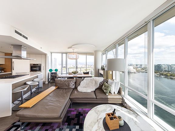 FLAGSHIP by Concord Pacific – Waterfront Luxury in Yaletown Spectacular southeast corner 3-bedroom residence with panoramic water views of False Creek and Olympic Village from every room. Located right along the Seawall and Coopers Park, this home offers the best of Vancouver’s waterfront lifestyle. Featuring imported European kitchen cabinetry, Sub-Zero, Miele & Viking appliances, wide-plank brushed oak flooring, air cooling, and a gas fireplace. The building offers 24-hour concierge, pool, hot tub, sauna, gym, and resident lounge. Comes with a private 2-car enclosed garage plus storage locker. A rare opportunity to own a true waterfront luxury home!