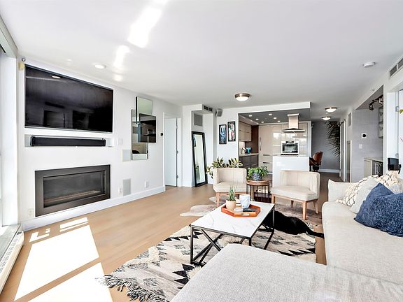 Welcome home to this truly exceptional and rare suite, featuring a unique 299-square-foot South West facing terrace accessible from all principal rooms. Flagship stands as the final instalment of the Platinum buildings by Concord Pacific, equipped with luxurious amenities such as Air Conditioning, Miele, Viking, SubZero appliances, a dedicated Concierge, as well as guest suite. The interior boasts bespoke finishes, including a custom hosting bar, home automation, automated blinds, California closets throughout, new lighting, a modern low-profile gas fireplace, built-ins, new hardwood flooring and a spacious private 2-car garage with built-in storage cabinets. This suite exemplifies the epitome of Yaletown living. Welcome to your new home.