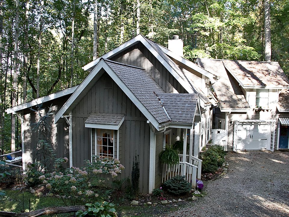 There is 1100SF in the main house(w/one bedroom & 1.5 baths)& luxurious 400 SF guest suite over the garage w/another bedroom/bath. Add to this over 250' of screened porch with wide finished pine flooring. 400SF of decks, with sunken hot-tub on the upper deck & a removable gazebo on the lower,connected by cascading stairs and landscape lighting. Truly a mountain shanghai-la. Can be purchased fully furnished for a turn-key investment. Prepare to be impressed!