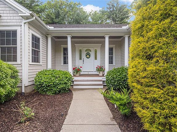 Stunning 3,000+ sq ft custom contemporary 3 BR / 2.5 BA ranch features architectural details and a uniquely adaptable floorplan. Elegant open layout great room w. cathedral ceilings, oversized gas fireplace, sliders to deck and open chef’s kitchen with island provide a welcoming setting for entertaining. A separate formal dining room with columns and wainscoting is an elegant space for sophisticated dinners yet could also be a cozy sitting room. An upstairs hideaway den could also be a large private office, library/workspace. The spacious primary suite w. ensuite bath and large walk-in closet is thoughtfully located to provide privacy and space for relaxation. At the opposite end of the house, a bedroom with sitting room could be a grandparents' suite or reconfigured into a Jack/Jill two-bedroom space, adjacent to a full bath and another corner bedroom. Detailed woodwork and exceptional craftsmanship is evident throughout. Full-house Generac standby generator. Dry 2,900+ sq. foot basement perfect for exercise studio, workshop, and/or playroom. Large private lot with room for a pool if desired. Located in the leafy hilltop Greenville Terrace neighborhood, convenient to shopping/dining, and highways. Short drive to the Fidelity campus (15 mins) or CVS headquarters (20 mins). Excellent location for commuting to downtown Providence (20 mins), Worcester (45 mins) and Boston suburbs (55 mins).
