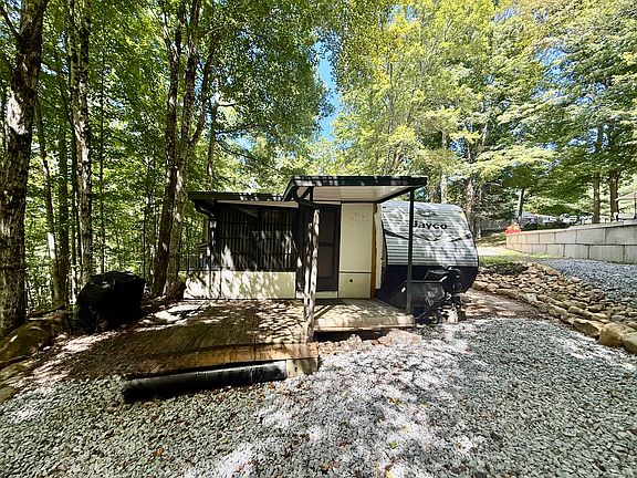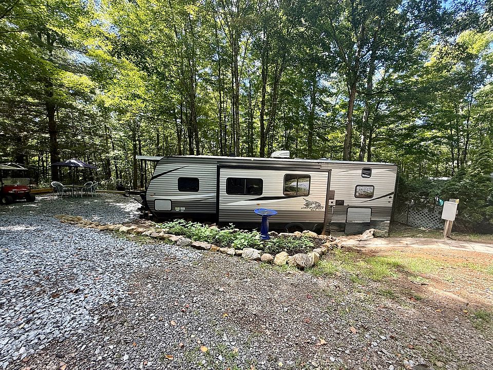 Welcome to your rarely available private retreat, nestled on a secluded wooded lot in one of the area's most vibrant seasonal communities at Roaring Brook. From April 15 to October 15, enjoy the perfect home-away-from-home in this immaculately maintained 2021 Jayco Jay Flight SLX - featuring 2 bedrooms, a spacious sunroom, and open-concept living designed for comfort and connection. This unit Sleeps up to 10 guests (6 comfortably), with a 4-bunk bedroom ideal for family or visitors. A Dedicated fire pit area and outdoor seating for cozy nights under the stars. Ample parking for guests and gear. Easy access to pavilion, movies, tot lot, horseshoe pits, and more! Included in the sale is a 2017 EZ Go TXT golf cart - your ticket to effortless rides to the recreational areas and pool. Move-in ready - just bring your personal items and start enjoying the community perks: Bingo nights & card games Basketball court & playground Sparkling inground pool Friendly neighbors and endless fun! Annual dues of just $2,800 cover sewer, electricity, and water - making this an unbeatable value for seasonal living. Act fast - this priced to sell gem won't last long! Whether you're looking for a weekend getaway or a summer sanctuary, this turn-key property is ready to welcome you! Biannual Taxes are $412.34