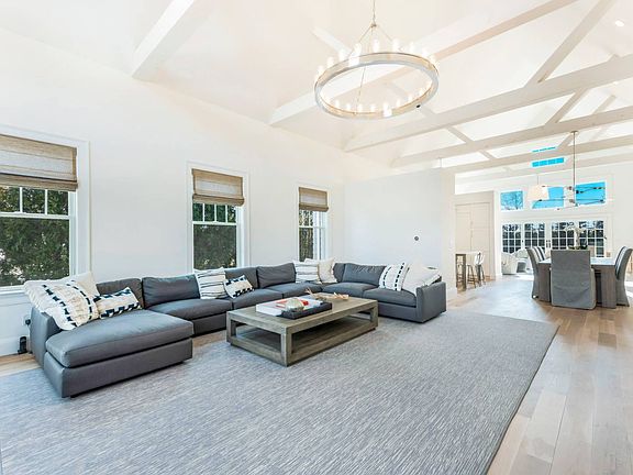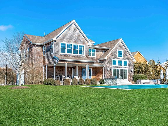 This stunning custom-designed Hamptons Traditional is being offered truly move-in ready, with a full home of beautifully curated furnishings ready to enjoy in ample time for summer. Conveniently located in Southampton, this 3800sf four bedroom, four and a half bath home has the open plan every buyer is looking for. As you enter through the covered front porch into the foyer you are immediately wowed by the 2 story vaulted great room running the expanse of the home with exposed wood beams, gorgeous light fixtures and walls of windows, filling the voluminous space with abundant natural light. The open floor plan allows for seamless entertaining with a natural flow from the grand living room with its impressive stone surround fireplace to the open dining area and gourmet modern kitchen with marble backsplash and top of the line appliances, to a sun filled media area and a large private den / office space with a rustic barn door, plus powder room, all overlooking the spacious yard and pool area. The second floor offers 4 generous ensuite bedrooms, including the luxurious master suite with custom marble bath and large walk in closet. A convenient laundry room and large linen closet finish this level. Enjoy outdoor entertaining through all seasons with the spacious yard, heated Gunite pool, an extensive patio, covered porch, and a built in bbq area - all surrounded by lush, mature landscaping and gated for privacy. Located in the idyllic community of Southampton Meadows, there is access to community amenities with tennis, a playground, covered pavilion and park, all steps from your home. Additionally the home features a full lower level ready to finish, an attached 2 car garage, security system, and sound system. Just listed, this is an incredible value not to be missed.